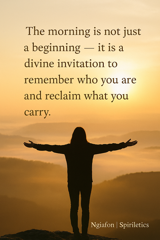 As Ngiafon teaches, the first breath of morning is a gift from the Creator — a divine offering of time, strength, and purpose. Before engaging the day, you are gently reminded: "This day has been given to you. It is yours to live, to shape, to honor."